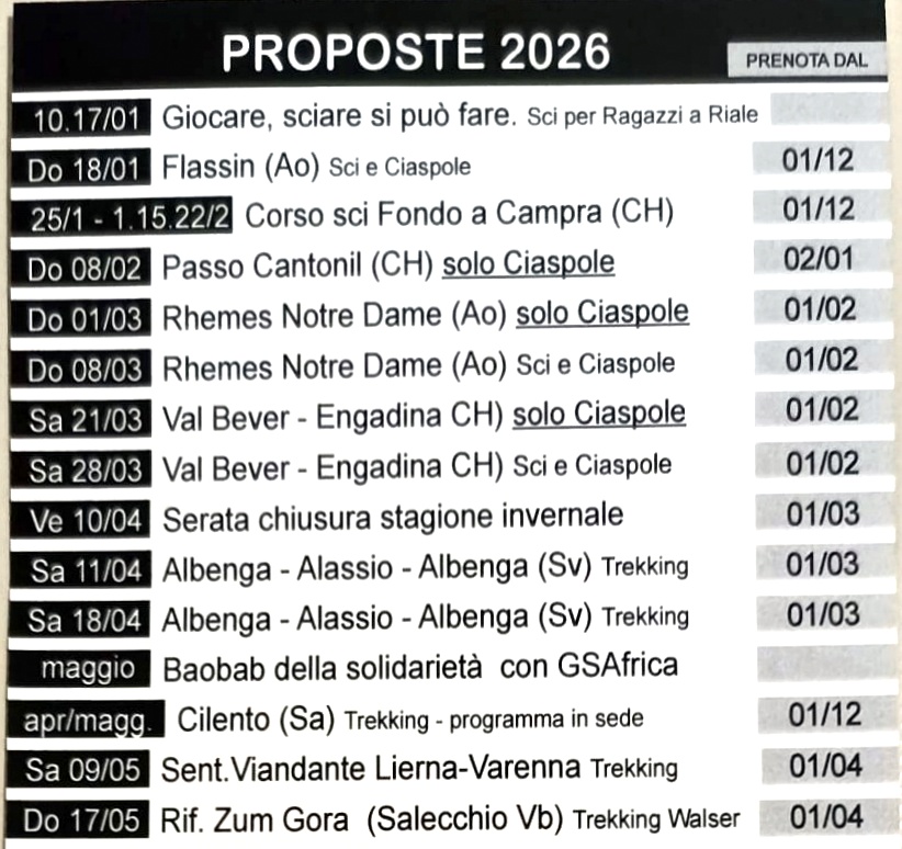 PROPOSTE 2026 SOLO PER ASSOCIATI